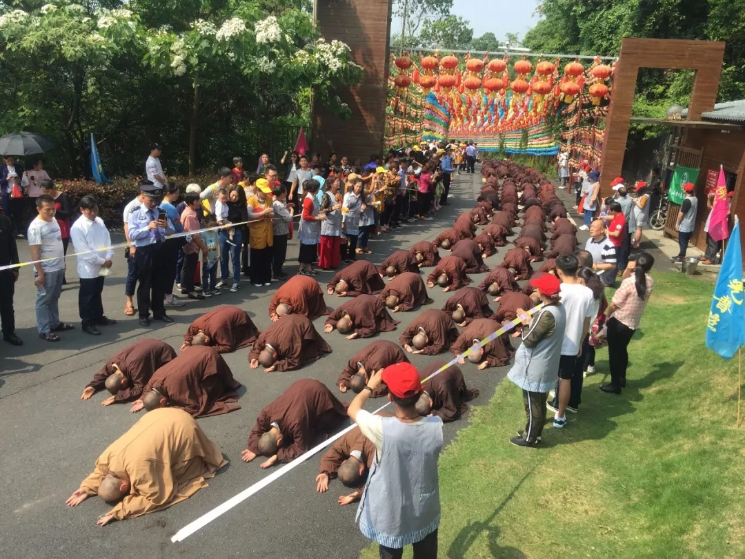 上午,沙县佛教协会数百僧尼与多名信士三步一叩首,虔诚朝礼,祝愿天下母亲幸福平安。朝礼活动吸引了不少游客驻足观看。其中不乏携带母亲登山旅游的游客,他们趁着节日与母亲踏青散心,闲话家常,共享温情时光。