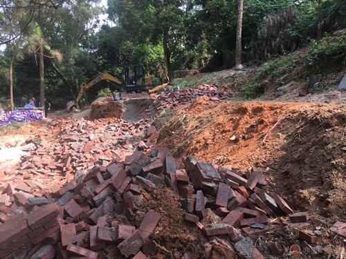 5月13日,冈田服务站干部在日常巡查中发现在冈田摩罗山有一处在建的圈地建墓地的红砖围墙。该围墙围绕着山坟而建,用红砖砌成,占地面积约80多平方米,已接近完工。摩罗山是冈田的生态墓园,圈地建围墙属非法超面积违建。发现这个情况后冈田服务站干部立即向服务站书记和镇民政办、城建办、国土所反映情况。经调查该围墙是冈田陂头村一户曾姓村民所建,服务站干部立即与该户村民沟通,说明摩罗山是冈田的生态墓园,圈地建围墙属非法超面积占地行为,国土所也发出责令停止和整改通知书,让其立即停工,恢复土地原状。