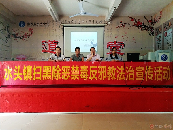 通过本次宣传教育活动,有效提高了广大师生对国家相关法律法规的知晓率,推动师生积极参与到禁毒、反邪教、扫黑除恶的斗争中来,小手拉大手、家校携手,创建“无毒校园”、助力建设和谐社会。(水头中学)