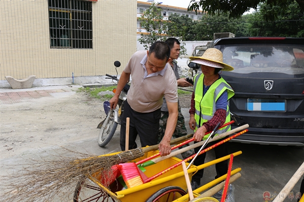 培训班过后,该村在村委大院简单举行了卫生保洁工具的发放仪式,将使用保洁筹集经费统一购置的垃圾车、垃圾铲、垃圾夹、扫帚、荧光工作服等一批新的保洁工具和用品发放到各经济合作社的保洁员手中。在发放仪式上,梁艳文再次强调了农村人居环境整治工作的重要性,要求各保洁员需按照“四固定”的工作方式认真做好清洁工作,当好村落卫生尤其是我们下一代居住环境的“守护者”,保障村庄环境干净、整洁、有序,让农村生态美丽起来、农民生活方式绿色起来。