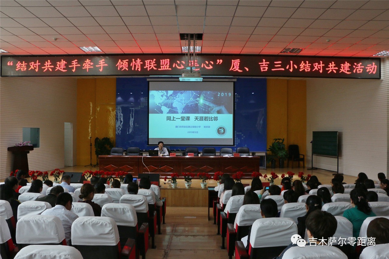 此次活动的主题为“结对共建手牵手,倾情联盟心连心”,活动邀请厦门专家团成员通过实地查看、座谈交流、教学研讨等多种形式,对吉木萨尔县第三小学学校管理、党建品牌、学校办学特色、教师培训、校本教研、教育信息化推进、学生习惯养成教育等方面进行详细了解。