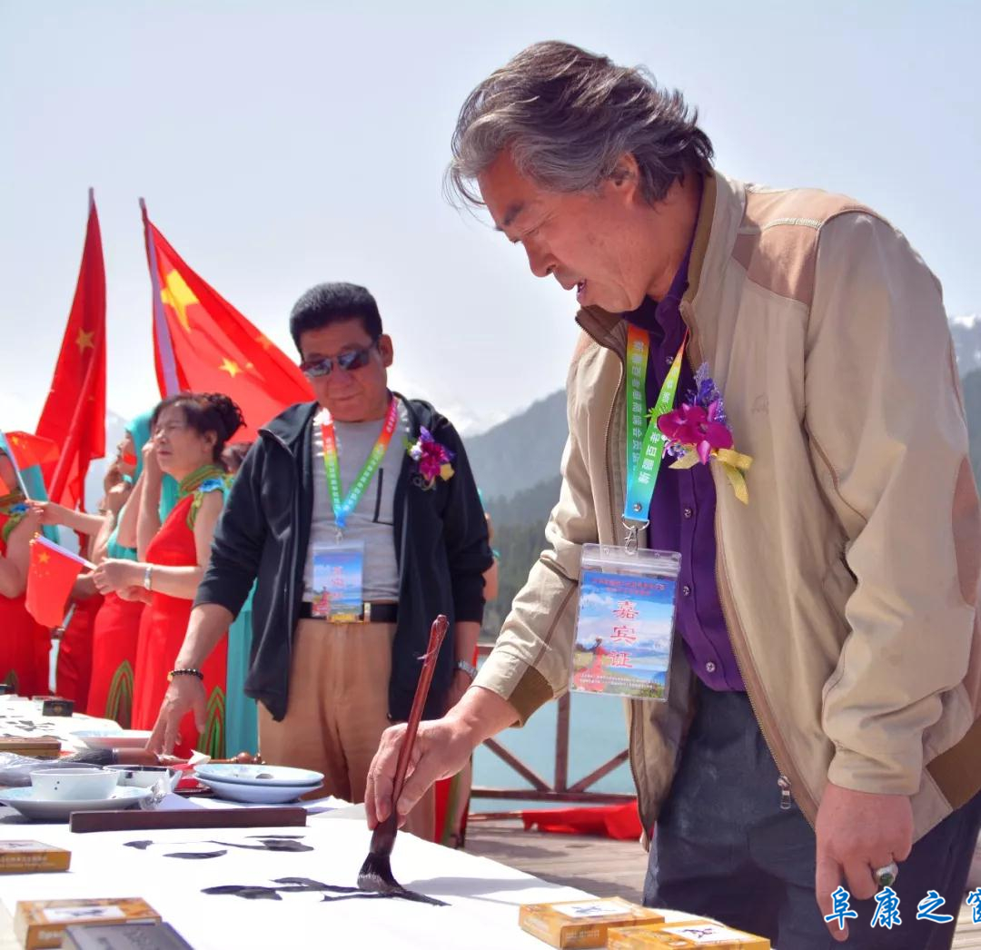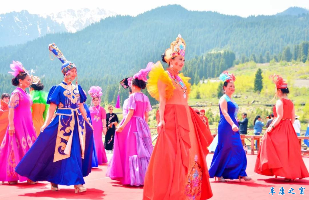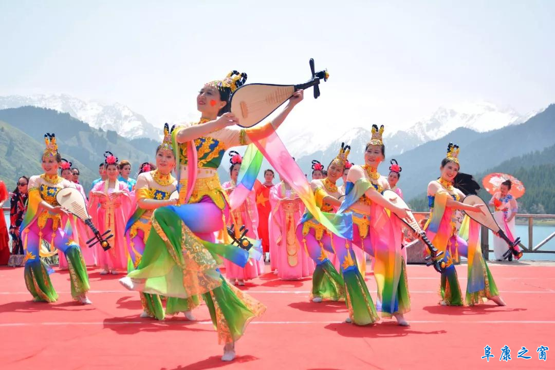 5月22日,来自全国各地的游客欢聚新疆天山天池,共祝祖国七十华诞。瑶池湖畔歌声缭绕,舞姿翩翩。