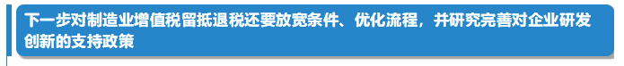 李克强说,中国经济韧性很强,宏观调控仍有政策工具运用空间。当前要把已明确的更大规模减税降费政策实施好,下一步对制造业增值税留抵退税还要放宽条件、优化流程,并研究完善对企业研发创新的支持政策。各地区、各部门要跟踪分析经济运行情况和政策落实中遇到的问题,完善应对措施,把减税降费等政策红利转化为优化经济结构、扩大有效需求的动力,确保经济平稳运行、民生不断改善,在推动高质量发展上取得新成绩。