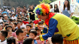 “儿科诊断室里常常是来看病的娃娃哭,陪护的家长急。”医院儿科副护士长尹丽娜介绍说,为了调解患儿情绪,缓解家长的心情,儿科去年开始便成立一个“小丑叔叔”工作室,由护士化妆成小丑,在前来就诊和进行输液、观察等检查、治疗的孩子们中,带着他们做游戏,给他们讲故事,舒缓孩子们的紧张情绪。今年“六一”之际,他们特意在门诊广场上组织了这场活动,“让孩子们在医院里也能过上一个快乐的儿童节”。