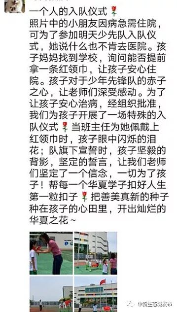 了解了事情的来龙去脉后,为了不给孩子留下遗憾,老师立刻将情况上报给学校,并很快得到反馈——立刻为延延准备一场入队仪式,即使只有一个人,也要圆了她的心愿。
