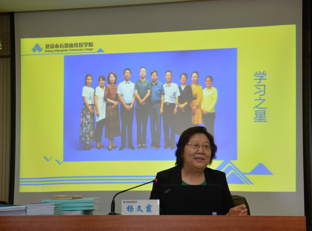 杨文霞院长在会上号召要向受表彰的优秀管理团队、优秀教学团队、优秀项目团队学习,向10位学习之星及先进个人学习,做新时代的优秀团队和学习者。