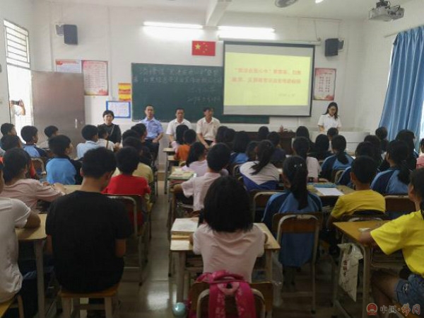 为使学校师生深入了解宪法、尊崇宪法,弘扬宪法精神,增强法治观念的同时,提高学生防毒拒毒能力。5月29日汤塘司法所联合镇综治办、汤塘派出所到汤塘镇三门小学举办“宪法在我心中”暨禁毒、扫黑除恶、反邪教等法治宣传进校园活动。汤塘镇三门小学校长郭浩文、汤塘司法所长朱顺华、汤塘派出所副所长杨植胜、清远市御福律师事务所律师周琴参加了活动。