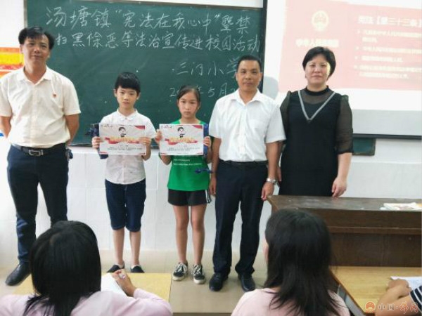 汤塘镇“宪法在我心中”暨禁毒、扫黑除恶、反邪教等法治宣传活动走进汤塘镇三门小学