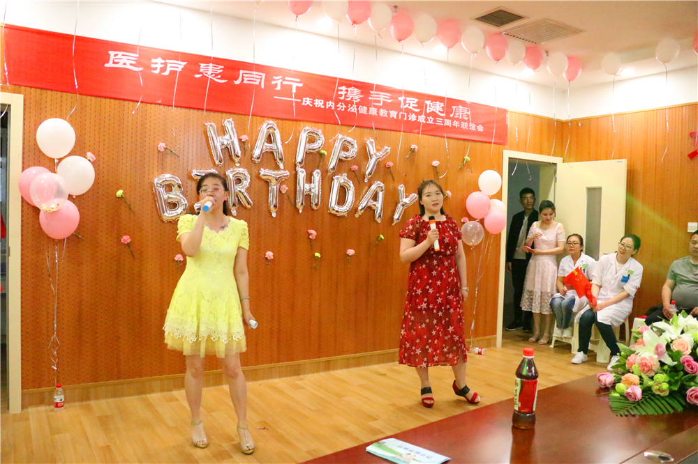 最后以一曲内分泌科全体医护人员献上的大合唱《相亲相爱一家人》结束,三个春华秋实,寒来暑往,健康教育门诊的成长离不开内分泌科医护人员辛勤的付出。在医院各部门的领导下,今天我们又踏上了新征程。