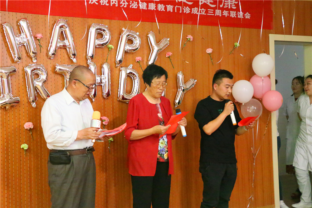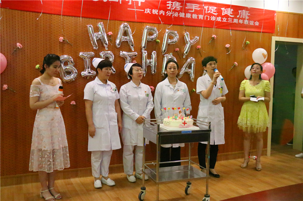 2016年5月内分泌科健康教育门诊正式开诊,三年来共接诊3675名患者,其中管理妊娠糖尿病患者208人。在内分泌科全体医护人员的共同努力下健康教育门诊工作逐步做强,积极开展慢病健康教育活动,门诊作为开展糖尿病及高脂血症、高尿酸血症、甲状腺相关疾病教育的重要窗口,帮助患者正确认识糖尿病及其他代谢性疾病,掌握疾病相关知识,并有效的进行自我管理。通过不断的实践和教育改进,取得良好的治疗效果和社会影响力。为感谢各方一直以来对教育门诊工作的关注和支持,2019年5月28日举办三周年医护患联谊会,会议邀请到门诊部郭志华主任,护理部总护士长乔俊英及50多名新老患者。