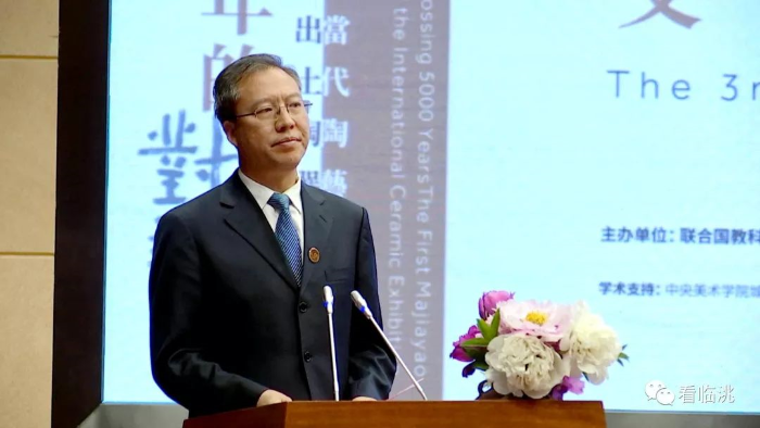 石琳在致辞中指出,临洮历史渊源,文化璀璨,县委、县政府高度重视马家窑文化保护发掘工作,先后4次配合考古研究所对马家窑遗址进行考古发掘,累计发现陶片、石器、骨器、动物遗骸等遗物60多万件,发现灰坑81个、房屋遗址48处、灰沟9条、墓葬10座,马家窑文化的神秘面纱逐渐揭开,马家窑文化正在以昂扬的姿态走出临洮、走向全国、走向世界。