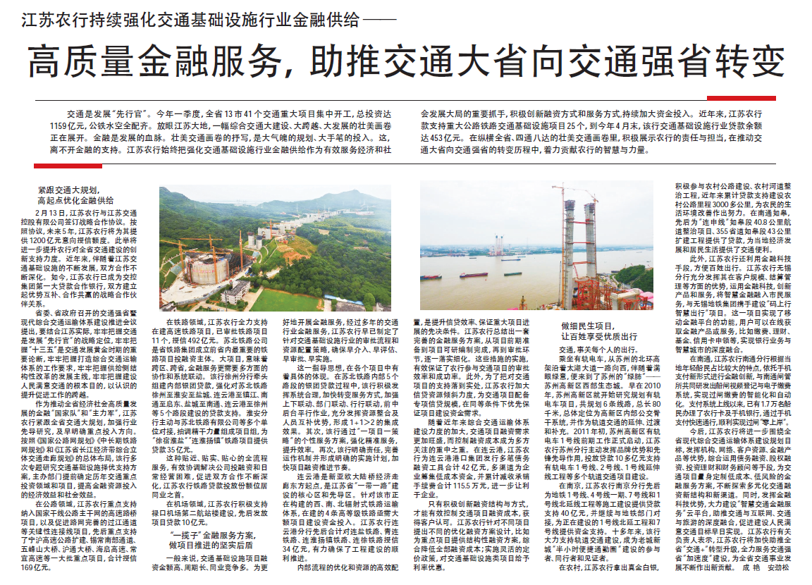 【新华日报】高质量金融服务,助推交通大省向交通强省转变