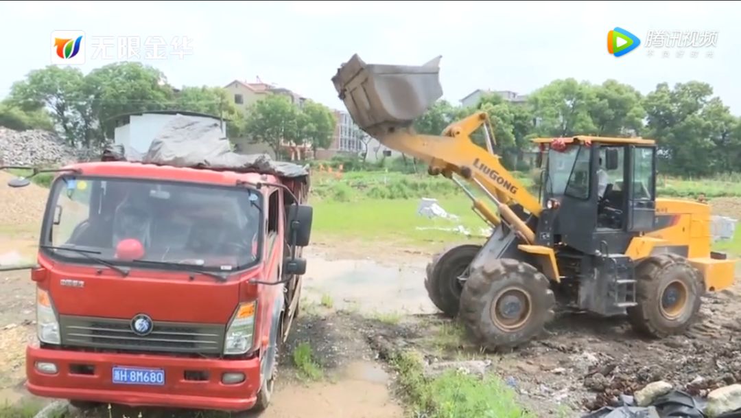次日,在现场,铲车、挖机已开始共同作业,对违规堆放在这里的炉渣进行搬运清理。