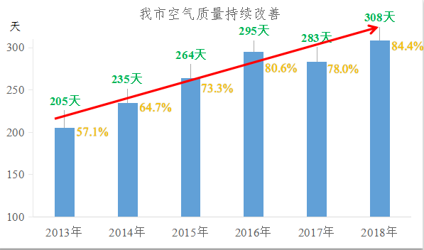 自2013年以来我市空气优良天数情况