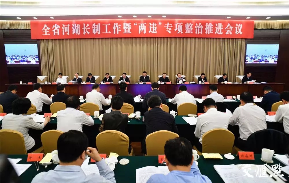 副省长费高云主持会议。会议听取了全省河湖长制工作和河湖“两违”专项整治进展情况的汇报。南京、淮安两市总河长作了交流发言。