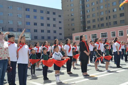 最后,辅导员老师带领全体队员一起呼号:“准备着,为共产主义事业而奋斗!”“时刻准备着”稚嫩又坚定的声音回荡在校园上空,充分表达了少先队员们作为社会主义事业接班人的信心和决心。