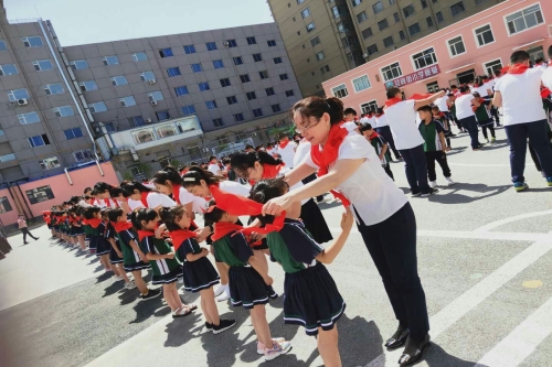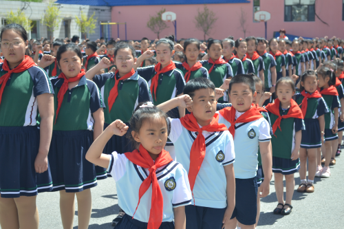 在六一儿童节即将到来之际,5月28日,迎宾街小学举办“队旗迎着党旗飘,我是党的好苗苗”庆六一入队仪式,500余名学生光荣加入中国少年先锋队。