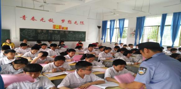 2019年5月31日下午2点半,武水镇综治办、司法所联合武水派出所在临武县三中开展法治教育进课堂活动。参加此次活动有学校老师、学生家长、学生等共计60余人。