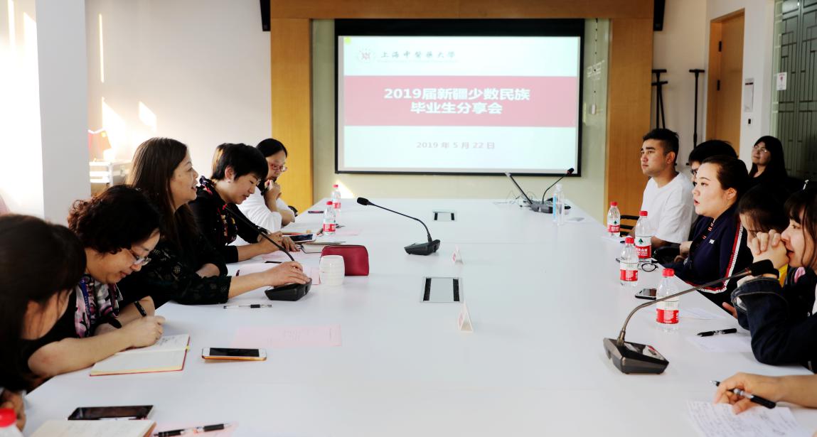 5月22日下午,我校2019届新疆少数民族毕业生分享会在学生事务与发展中心310会议室举行。校党委副书记、副校长朱惠蓉出席分享会并讲话,学生工作部(处)副部长成琳、徐丽英,少数民族专职辅导员洪汉英、关琳子及新疆少数民族学生参加此次会议,会议由徐丽英主持。