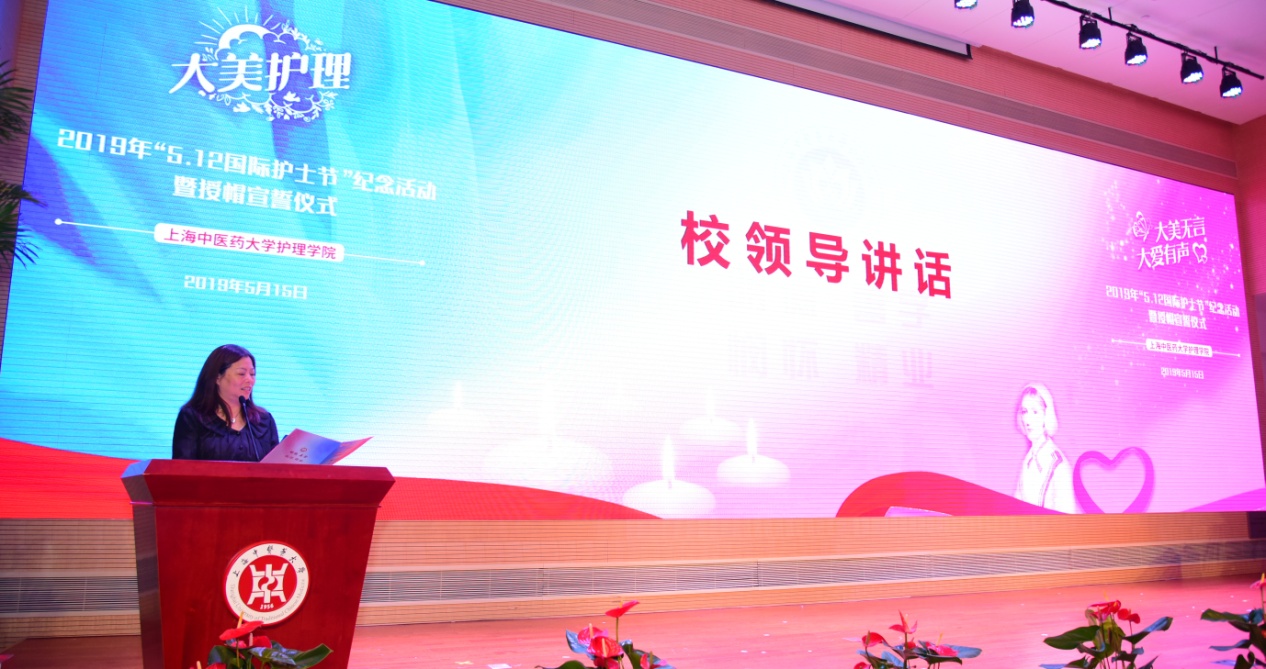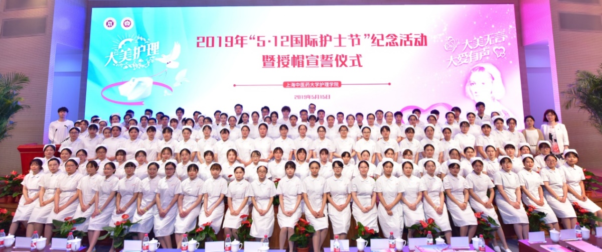 5月15日下午,我校护理学院在图书馆裙楼四楼报告厅举办2019年“5·12国际护士节”纪念活动暨授帽宣誓仪式。校党委副书记、副校长朱惠蓉,校党委副书记、纪委书记张艳萍,护理老专家吴霞、彭佳珍,教务处处长舒静、学工部副部长徐丽英,校团委副书记(主持工作)吴平,护理学院党总支书记史美育、院长张翠娣、副院长廖晓琴、副书记张瑛,上海健康医学院附属卫生学校徐敏副校长、李珺主任,岐黄育人实践基地太平养老产业管理有限公司许立新总监,各附属医院护理部主任和护理学院各教研室主任及师生代表等出席活动。