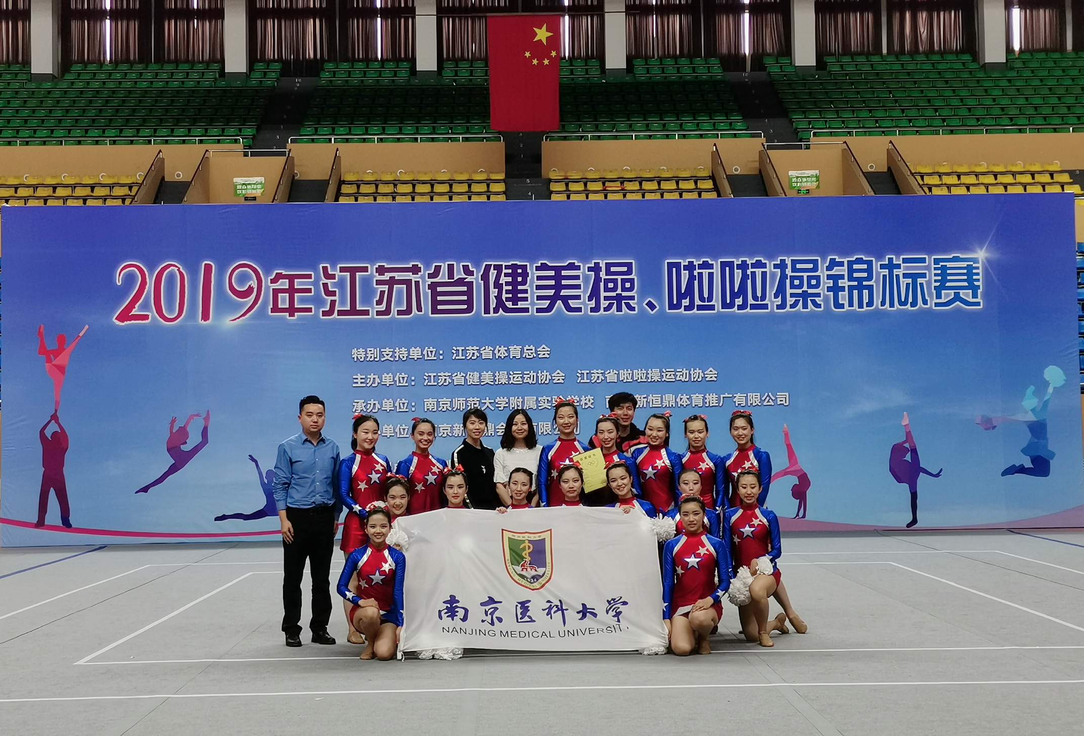 25日至27日,2019年江苏省健美操、啦啦操锦标赛在南京师范大学仙林校区体育馆举办。我校体育部选派20名运动员组成的啦啦操队参加比赛,夺得公开青年组集体花球自选项目亚军。