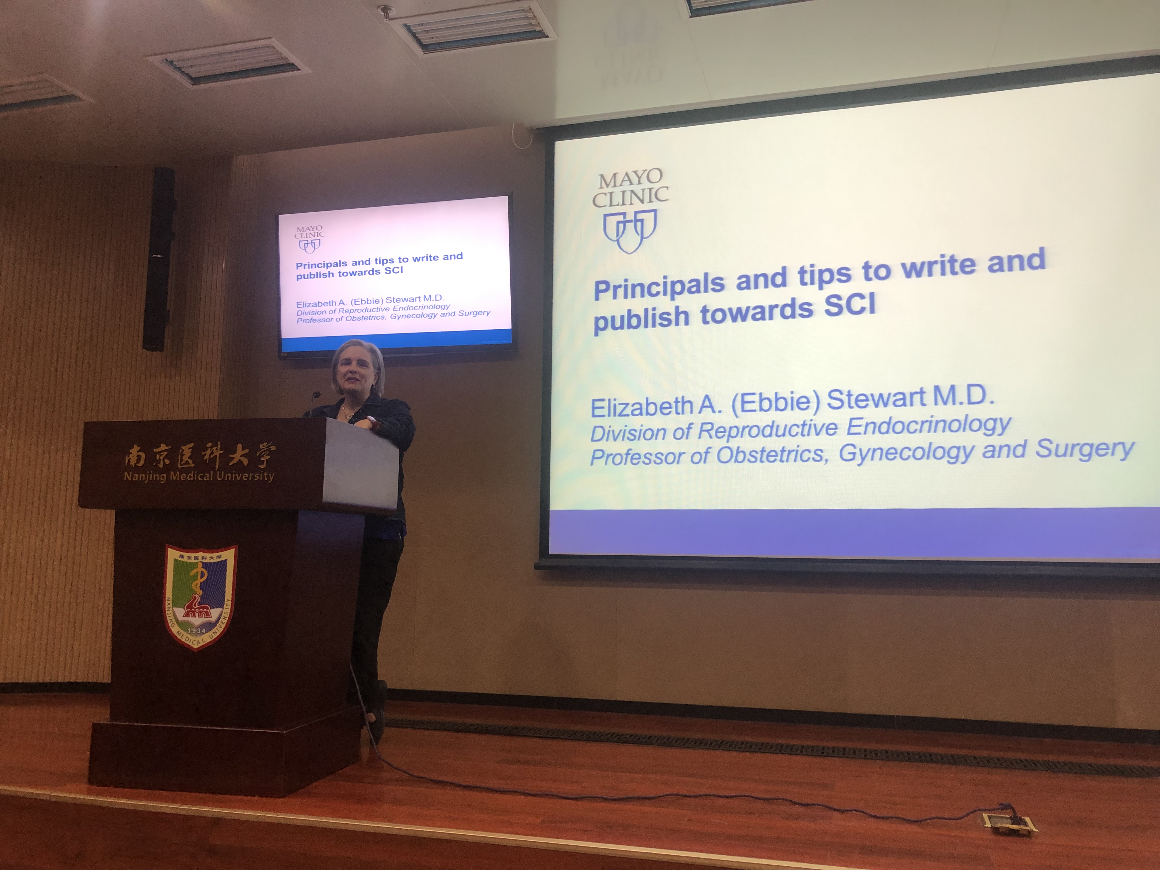 5月20日,应我校国际合作与交流处邀请,美国梅奥诊所的伊丽莎白.A.斯图尔特(Elizabeth.A. Stewart)教授为我校举办SCI写作培训讲座。全校100余名师生参加了活动。