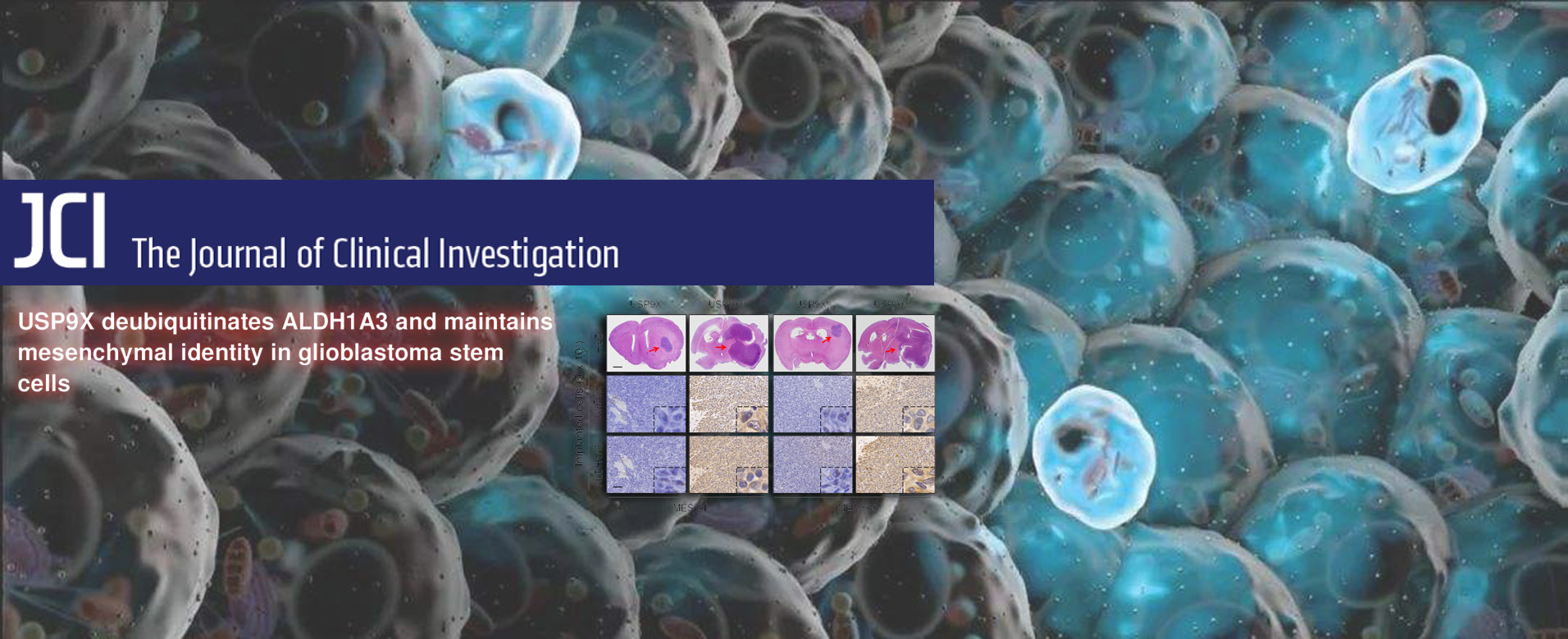 2019年4月8日,南京医科大学第一附属医院神经外科王慧博教授团队在国际顶级医学综合期刊《The Journal of Clinical Investigation》(5年影响因子14.434)在线发表了题为“USP9X deubiquitinates ALDH1A3 and maintains mesenchymal identity in glioblastoma stem cells”的研究论文。JCI为该研究专门配发特约评论文章“Deubiquitinating ALDH1A3 key to maintaining the culprit of aggressive brain cancer”。同时,JCI出版的当月文摘JCI This Month将这一研究工作做为重点推荐。