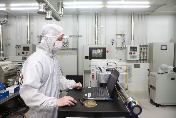 6月3日,复旦大学微电子学院教授张卫、周鹏团队成员刘春森在实验室内工作。