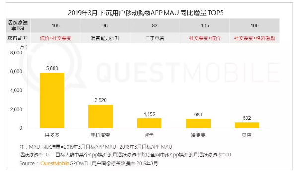 QuestMobile发布下沉市场报告:拼多多净增5880万月活 高于行业增量总和