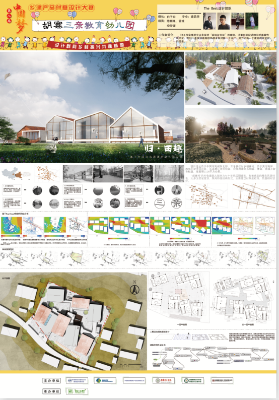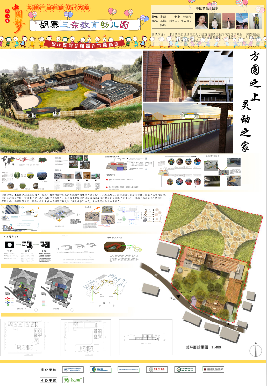 本网讯 近日,由建测学院陈进春老师指导,建筑专业学生白子申、陈麟凡、曾城、李梦媛共同完成的参赛作品《归·田趣》,张蕊、杨琦、王艳、刘释吉、叶志强共同完成的参赛作品《方圆之上,灵动之家》,分别荣获2019第八届中国梦绿色建筑设计大赛中《“三亲生态”幼儿园设计》专题建筑设计二等奖、三等奖。