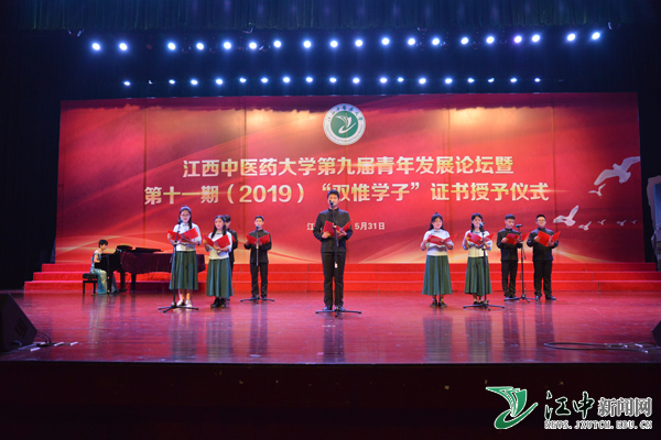5月31日晚,我校第九届青年发展论坛暨第十一期“双惟学子”证书授予仪式在神曲厅举行(杨清跃 摄)