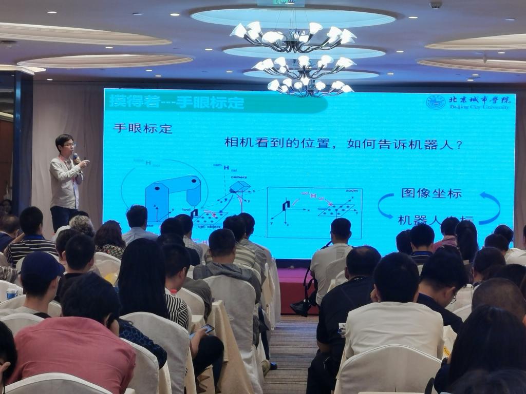 张老师在发言中,介绍了智能电子制造研究中心在机器视觉、图像处理、机器人运动控制、增强现实、智能检测、人工智能等方面的最新研究成果及成果应用情况,受到了与会专家和企业领导的认可。