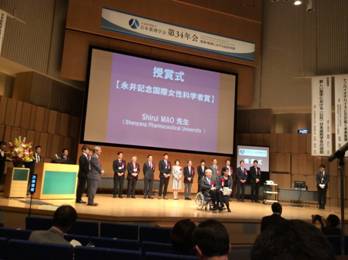 我校毛世瑞教授荣获由日本药剂学会授予的“国际女性科学家”奖并出席颁奖大会