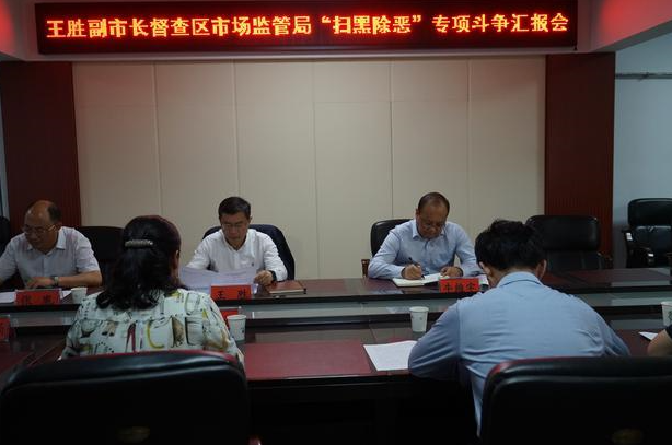 王胜强调,各级市场监管部门要按照“有黑扫黑、无黑除恶、无恶治霸,无霸治乱”的工作思路,立足市场监管职能,在思想认识上再提高、工作开展上再深入、组织领导上再强化,持续深入推进扫黑除恶专项斗争工作。要把扫黑除恶专项斗争工作纳入重要议事日程,实行一把手负责制,夯实各级责任,确保扫黑除恶专项斗争工作落到实处。要进一步做好扫黑除恶专项斗争工作的宣传发动、线索摸排等工作,切实加大市场监管执法力度,重拳打击传销、垄断、不正当竞争、走私贩私、违法广告、无照经营、消费欺诈等违法行为。
