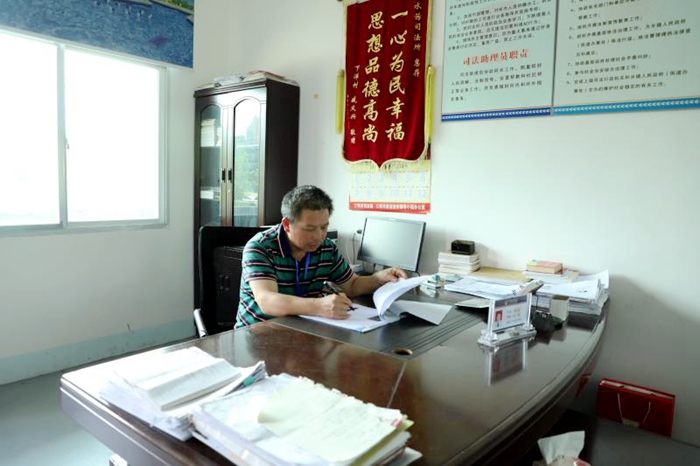 5月23日,在宁化县水茜镇人民调解委员会,邱位焰提前半小时来到办公室,这是他工作常态。他总说,干工作,要对得起自己的这份职业。