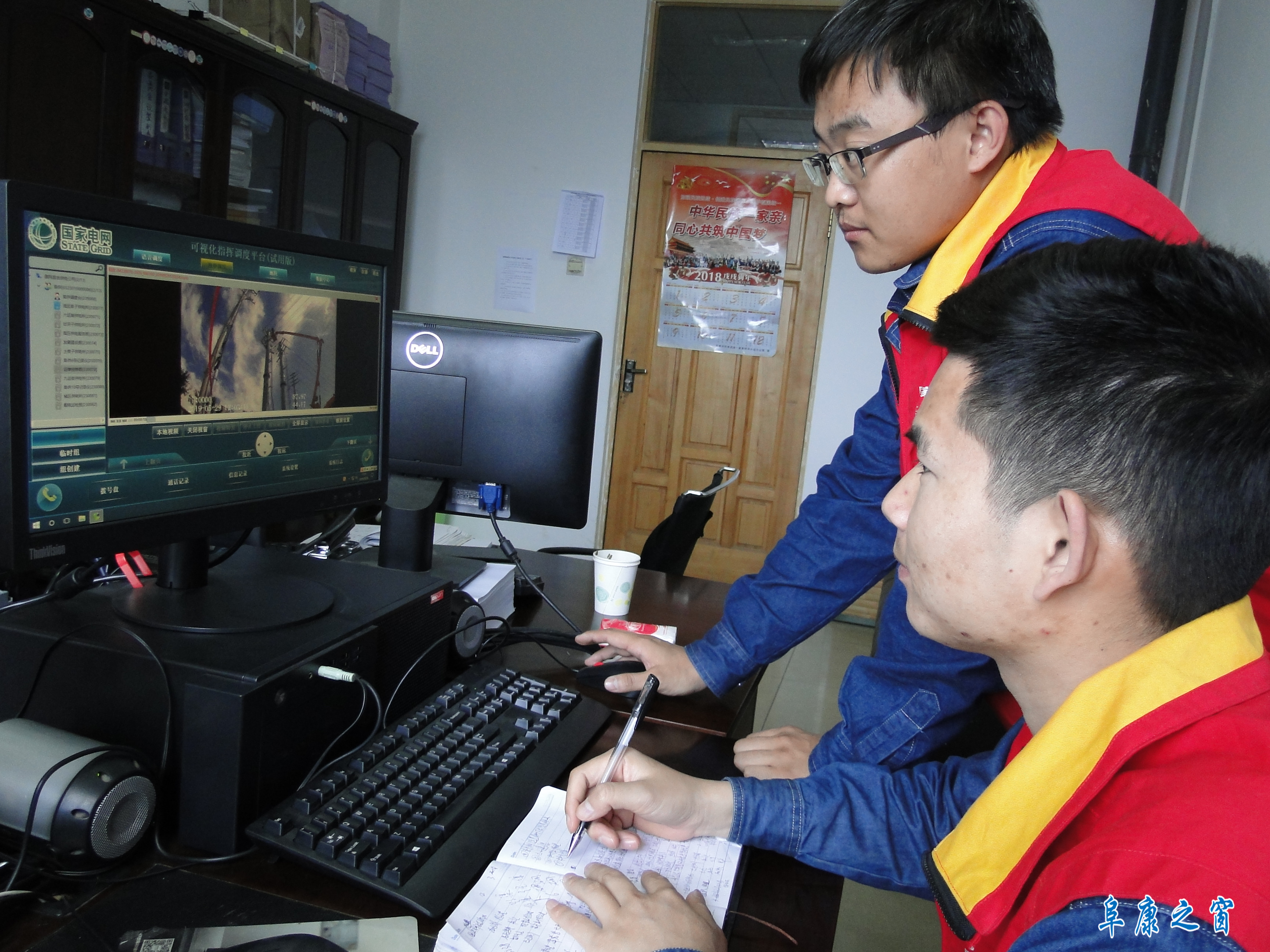 国网阜康市供电公司员工马冰峰、刘如意用执法记录仪监测检修工作