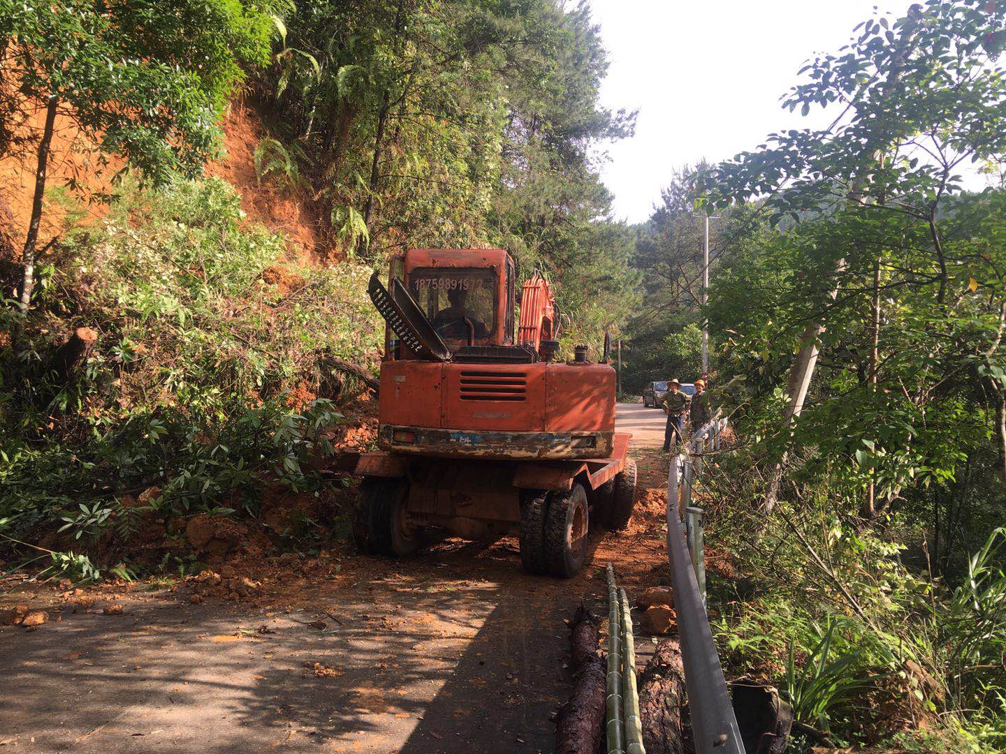 抢险:安排工程机械清理土石方,道路两端设置警示标志