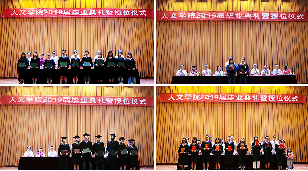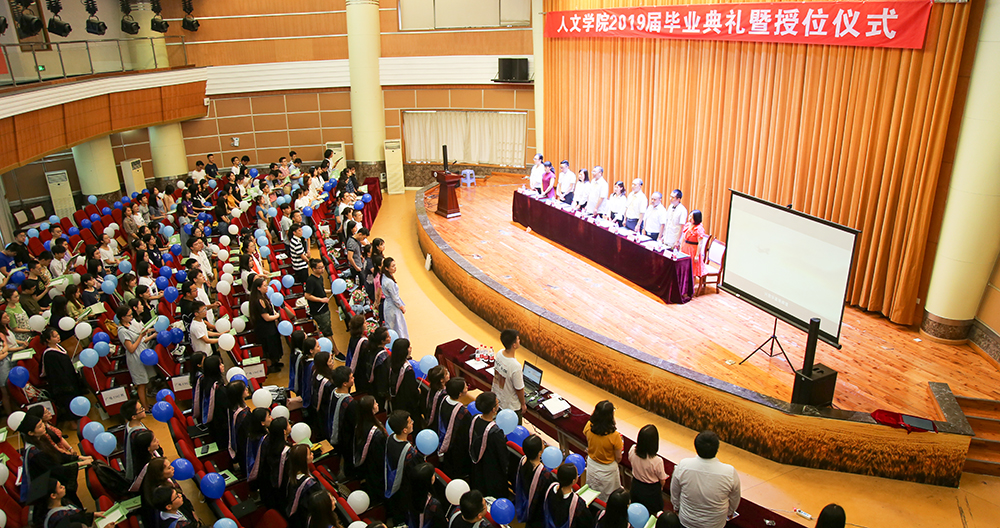6月10日14:00,人文学院2019届毕业典礼暨授位仪式在第二教学楼四楼多功能厅举行。人文学院领导班子成员、院长助理、各系(副)办主任、毕业生辅导员、教师代表及全体毕业生参加;党总支副书记魏巍主持典礼。