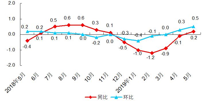 5月份,北京市工业生产者出厂价格同比上涨0.2%,环比上涨0.5%;工业生产者购进价格同比上涨0.1%,环比持平。