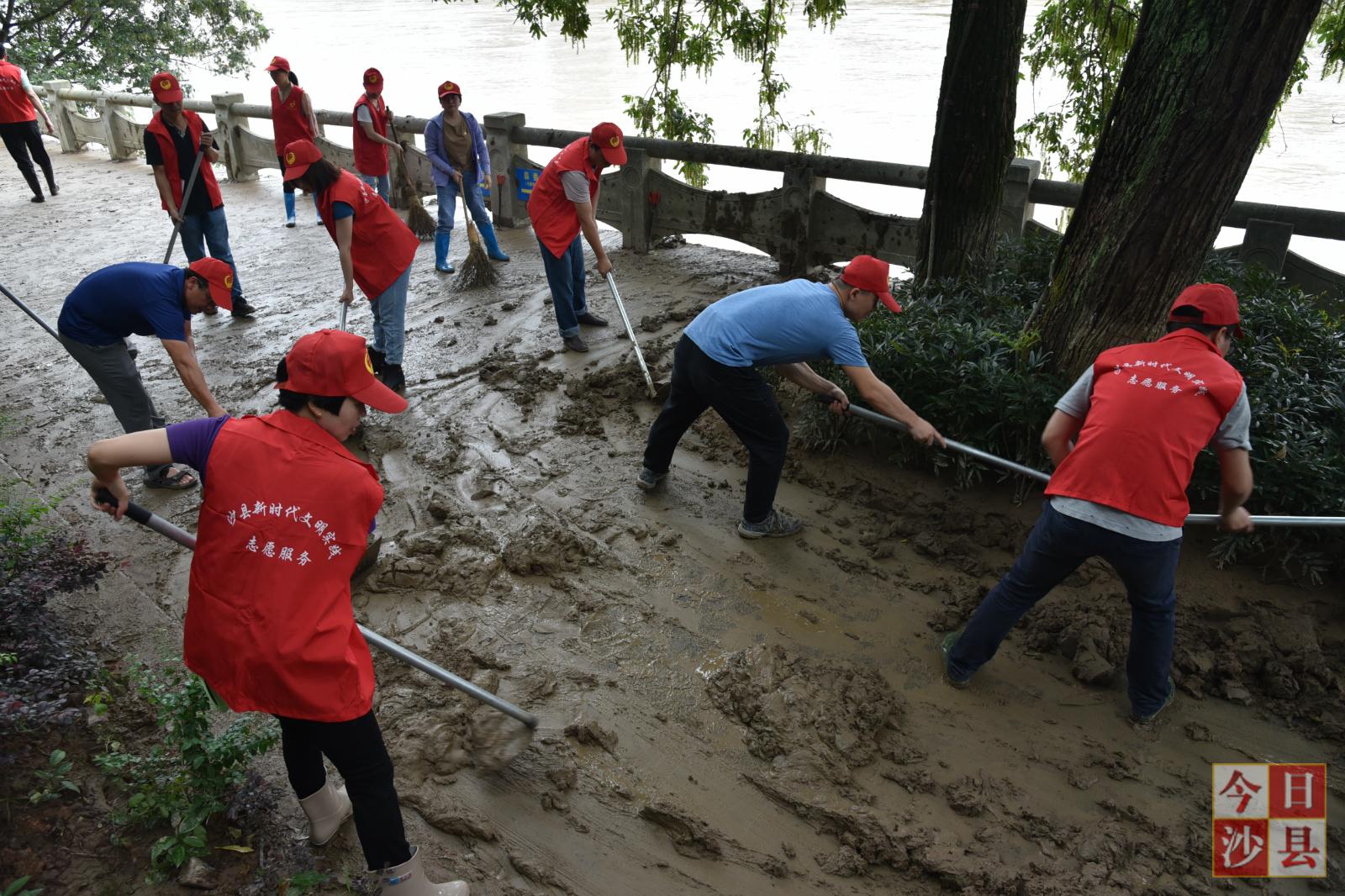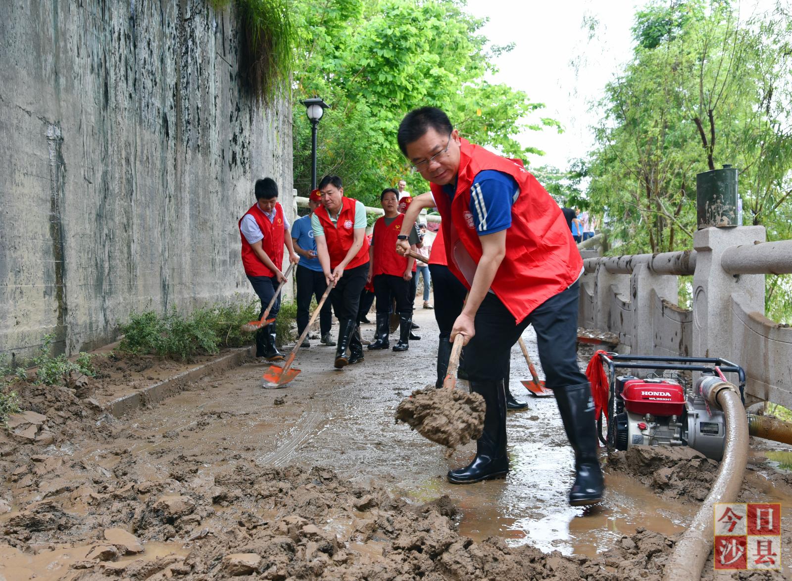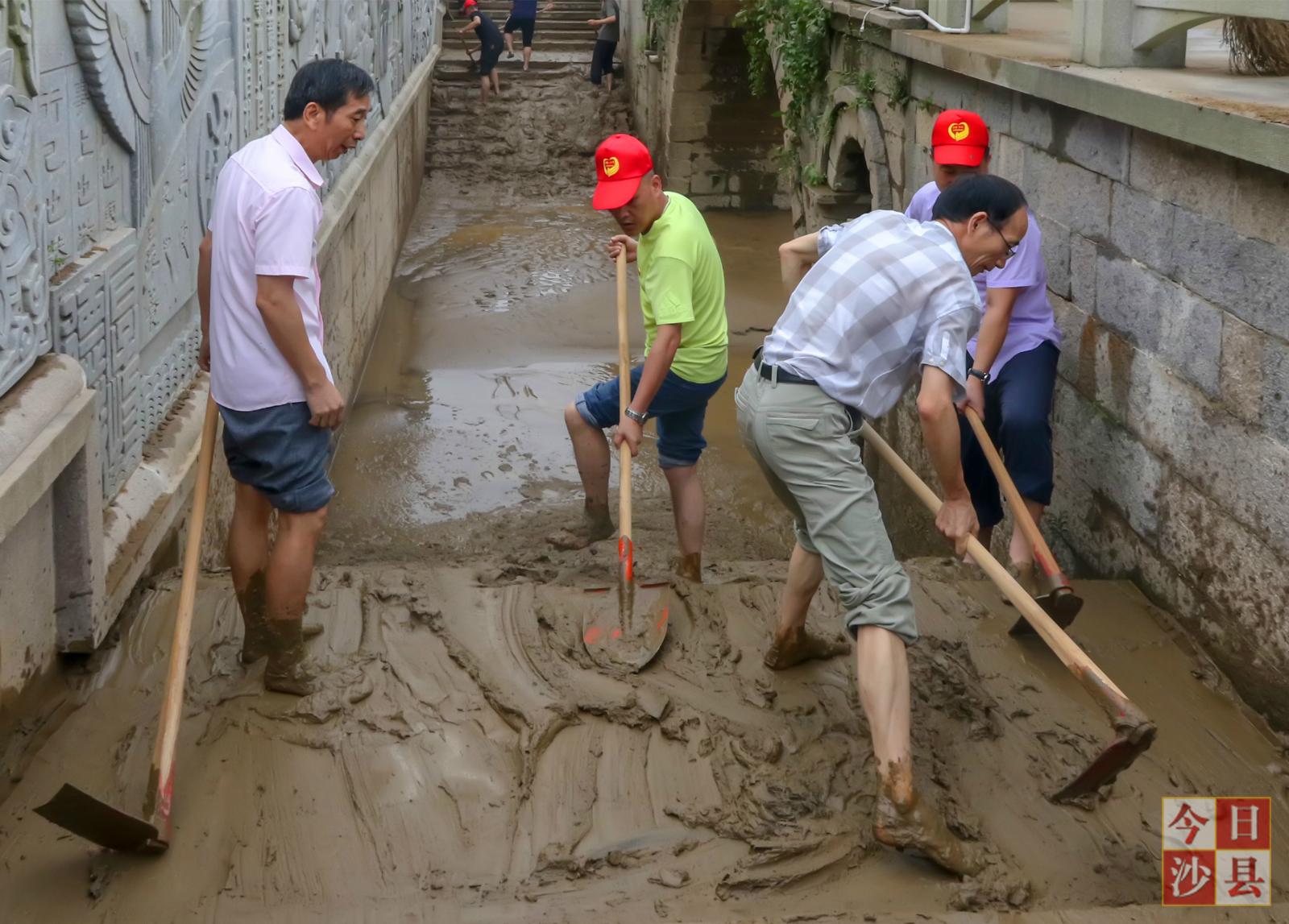 我县600多名党员带头投身灾后清淤工作