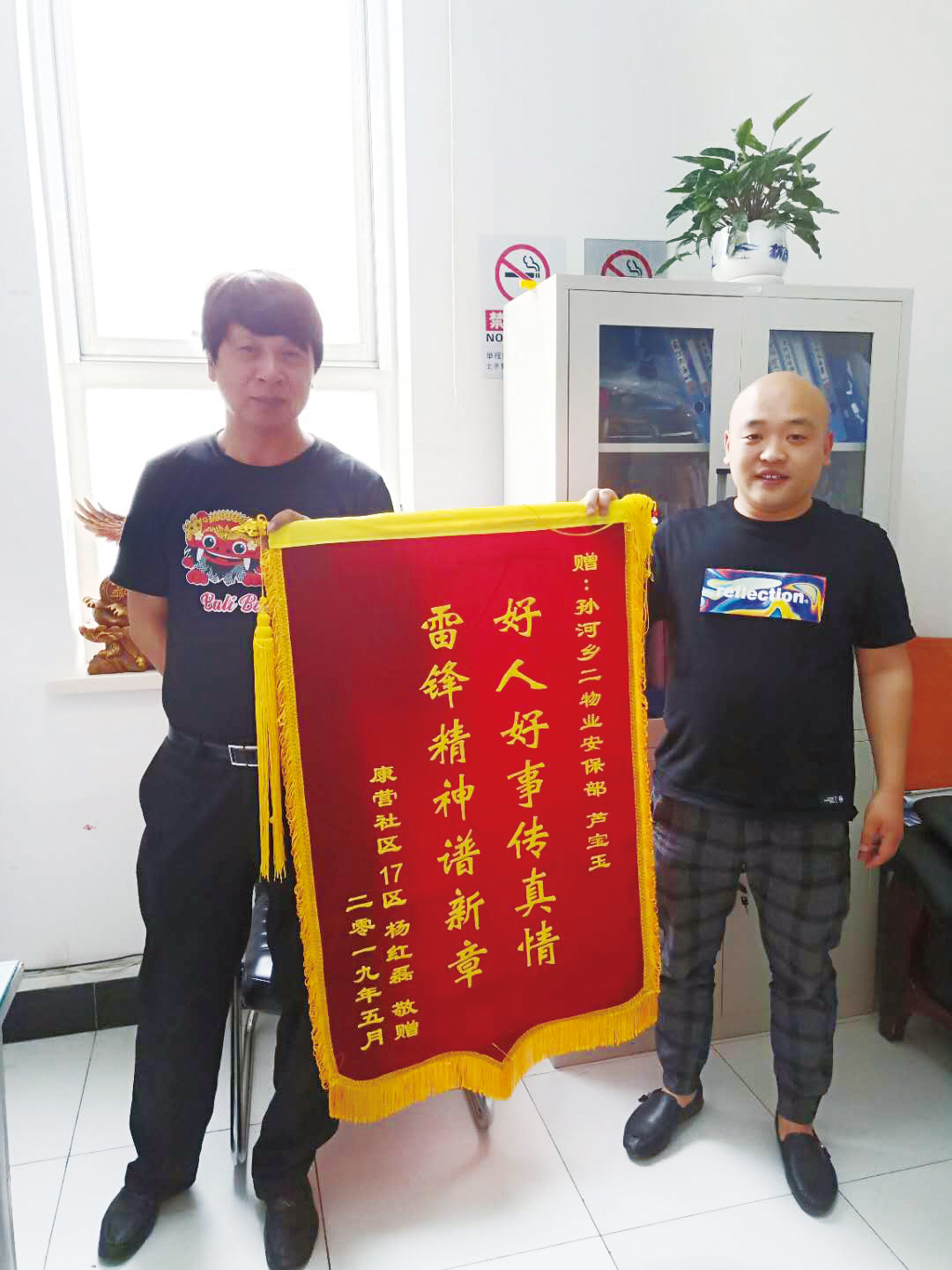 5月22日,两位居民带着印有“雷锋精神谱新章,好人好事传真情”字样锦旗,来到物业安保部办公室特意表示感谢。