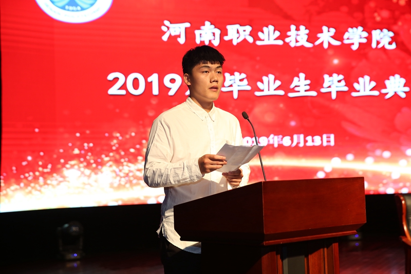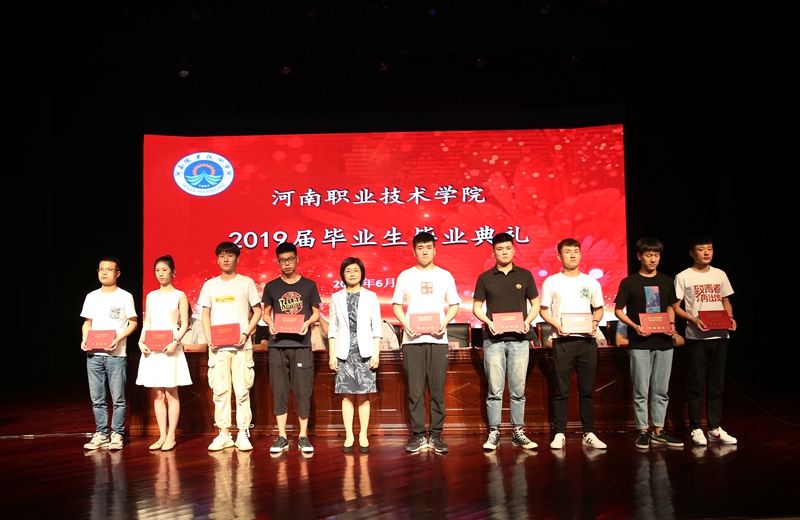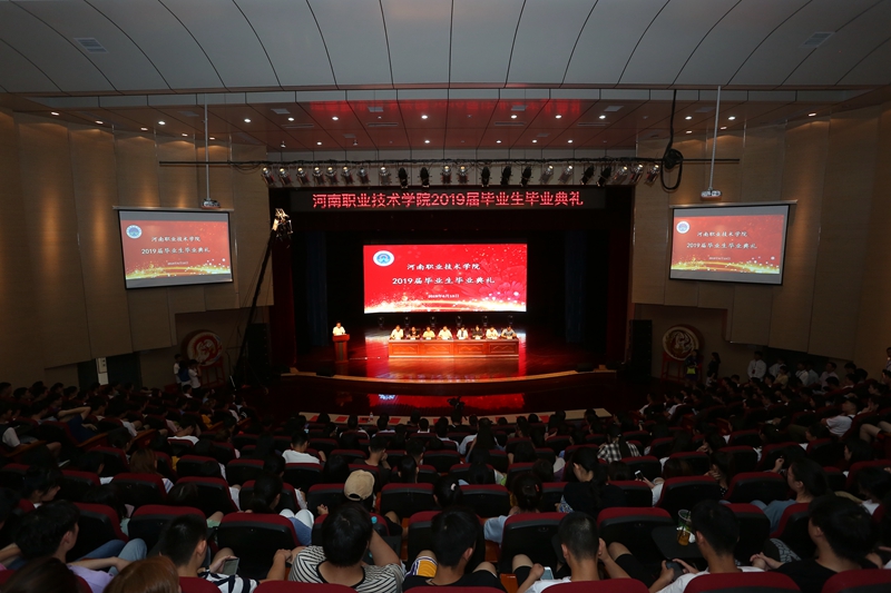 6月13日上午,我校2019届毕业生毕业典礼在音乐厅隆重举行。校领导班子全体成员出席了典礼。学校各相关职能部门负责人、二级学院负责人、辅导员和教师代表,以及500余名毕业生代表观看了典礼。典礼由校党委书记李四清同志主持。 毕业典礼在雄壮的国歌声中正式开始。校工会主席夏喜利同志宣读了2019年河南省优秀应届毕业生表彰文件;校领导为2019届毕业生代表颁发了毕业证书,为2019届河南省优秀毕业生代表颁发了荣誉证书;电气工程学院毕业生黄栩然同学代表2019届毕业生回顾了三年的大学生活,对母校、老师、家长和同学们分别表示了感激之情,表示将承载学院领导、老师们的深情嘱托,做胸怀大志并脚踏实地的人,做德才兼备并勇于创新的人,在祖国的各个行业为河职争光;思想政治理论教学部马金伟作为教师代表为毕业生上了一节精彩的思政课。他从立志、奋斗、实干、乐观、努力等6个方面,用生动的事实和风趣地语言表达了学校全体教师对2019届毕业生的殷切期望和衷心祝福,希望他们谱好自己的青春之歌。 校党委副书记、院长李桂贞同志作了题为《不断刷新自我 书写华彩篇章》毕业典礼致辞。她代表学校,向学业有成、即将踏上人生新征程的全体毕业生表示了诚挚的祝福,向获得优秀毕业生荣誉的同学们表示了衷心的祝贺;向为同学们的健康成长倾注了爱心、汗水和智慧的老师们表示了崇高的敬意。她对同学们表达了依依不舍之情,并叮嘱大家:“愿你们牢记责任敢担当;愿你们爱岗敬业做栋梁;愿你们创新不止勇超越;愿你们心怀感恩永达观。” 最后,校党委书记李四清同志对2019届毕业生给予了祝福与希望。他希望同学们要做一个心中有爱,有情怀的人。作为新时代的青年,一定要有爱国爱家爱校的情怀;要做一个胸中有志,有信念的人。坚持初心,坚定信心,咬定青山不放松,撸起袖子加油干,实现更好的自我;要做一个行中有善,有原则的人。诚实守信,善待他人,以“与人为善”的态度,以河职人的“厚德”,助人为乐、成人之美,积极传播正能量。最后,他祝福同学们鹏程万里,一生幸福! 典礼结束后,校领导和全体与会师生,一同观看了为2019届毕业生精心准备的文艺演出。(供稿:童俊艳,审稿:鲁冬)