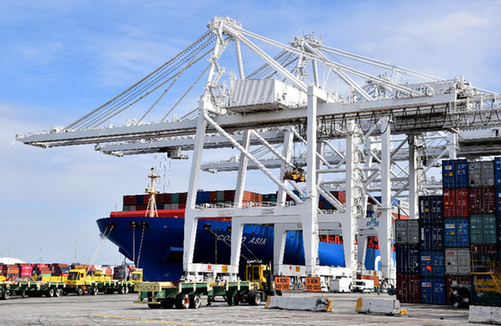 这是2019年2月27日在美国加利福尼亚州洛杉矶县拍摄的长滩港码头。