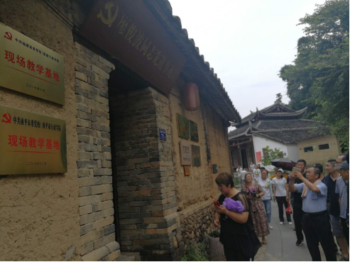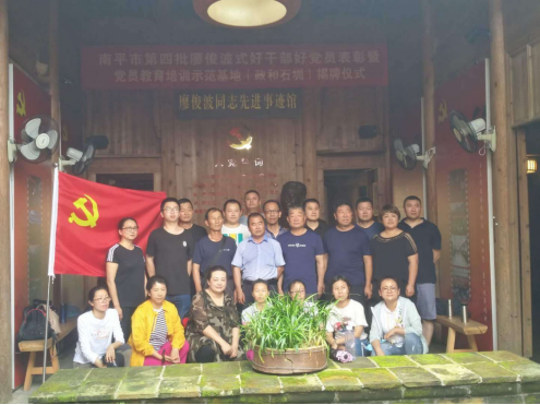 在石圳自然村,培训学员们在村民的热情带领下,瞻仰了廖俊波同志先进事迹馆。在馆内,学员们认真聆听村民介绍廖俊波同志先进事迹,对廖俊波同志的公仆精神充满敬意,纷纷表示,虽然原先在单位已在组织的带领下学习了廖俊波同志的先进事迹,但是现在亲身到了廖俊波同志工作过的地方,感受更深刻。他们纷纷表示要把向廖俊波同志学习记在心上,不忘初心,牢记使命。随后培训班临时党支部在馆内重温了入党誓词,并合影留念。