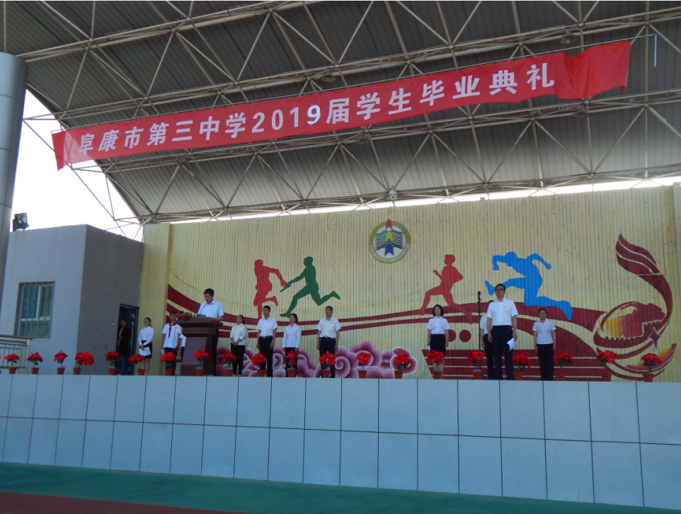 花开六月,又到一年毕业季。6月21日,阜康市第三中学2019届毕业典礼在学校操场上举行。学校书记王卫东、校长木辉提、副校长汪涛、张萍等校领导、学生家长代表及全校师生参加了这场青春的盛会,毕业典礼由副校长汪涛主持。