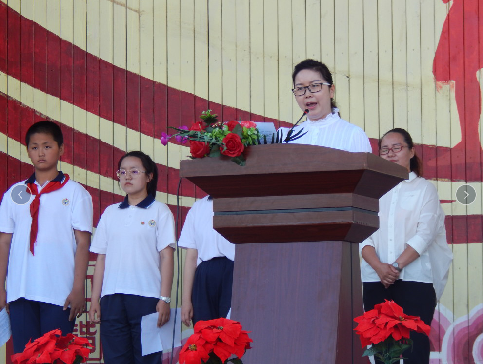 学校校长木辉提向完成初中学业的九年级学子表示热烈祝贺!学校领导为毕业生颁发了毕业证书,由九年级组长潘荔代表学生领取。