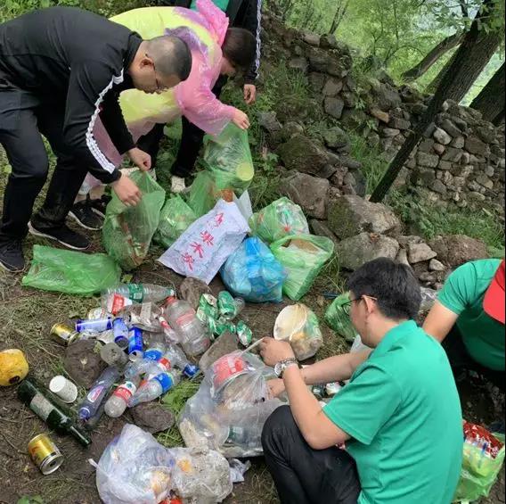 在玉渡山后河,大家清理沿途及露营地的垃圾。垃圾分类讲解员给大家讲解了珠峰现在面临的垃圾问题以及如何对日常垃圾进行分类。大家一边爬山一边捡起路边的垃圾,有的队员说:“真没想到啊,这种不是旅游区的地方,还有这么多垃圾。”