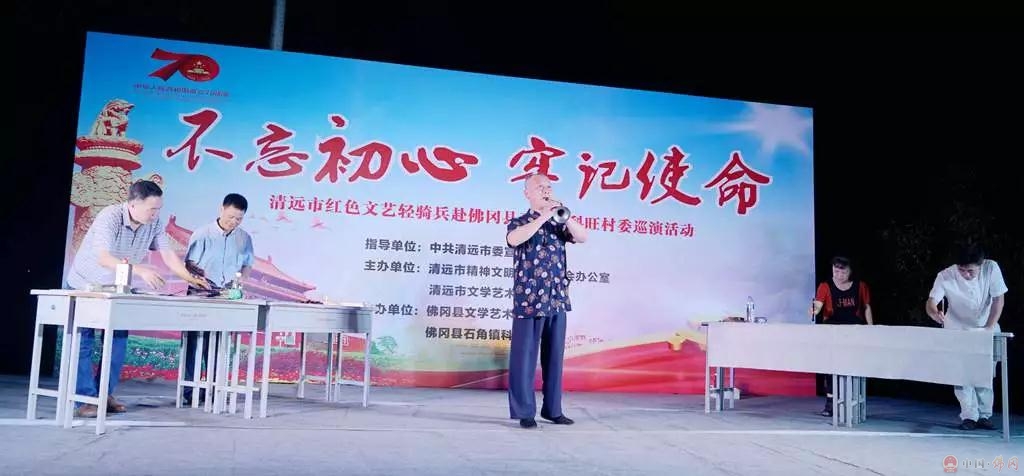 为贯彻落实习近平新时代中国特色社会主义思想和十九大精神,由市委宣传部指导,市文明办、市文联主办的“不忘初心,牢记使命”清远市红色文艺轻骑兵巡演活动在佛冈县开展。6月19日晚首场演出在石角镇科旺村委举行,20日早上,在水头镇中心小学举行了第二场演出。