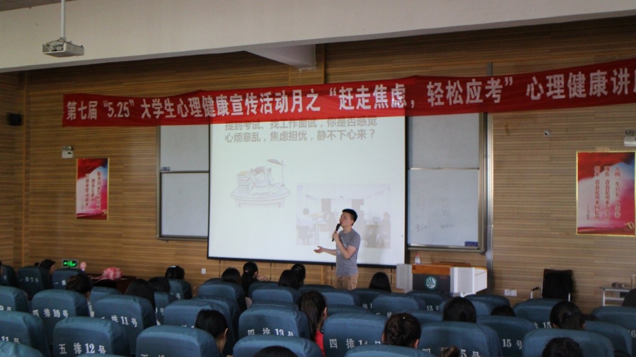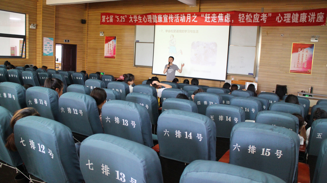 我校开展第七届“5.25”大学生心理健康宣传活动月之“赶走焦虑,轻松应考"心理健康讲座