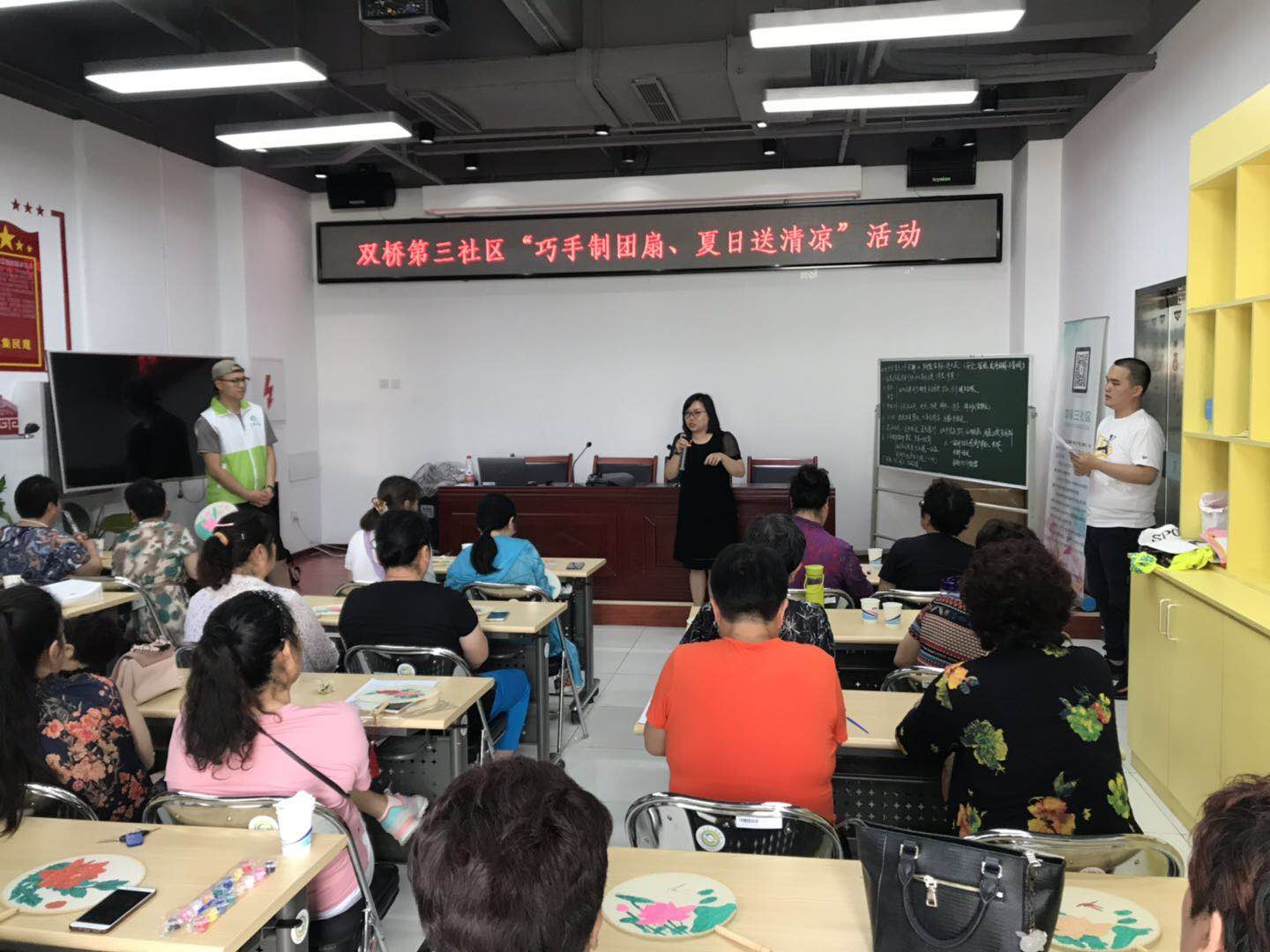 炎炎夏日如何才能为社区居民带来一丝凉意?为此,双桥第三社区开展了“巧手制团扇,夏日送清凉”花艺团扇制作活动。